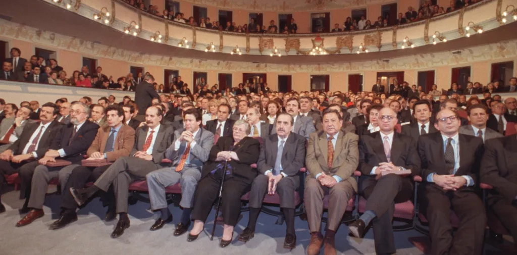 Durante esta gran larga marcha que podríamos extender hasta la crisis de 2001-2002, la clase media aceptó ser socia en las ganancias de los logros de la corporación política sin mayores cuestionamientos al orden democrático. Esto fue así porque el rasgo común de la praxis política en esa época en torno a muchos temas (el juicio a las juntas, la represión al MTP en La Tablada, la represión a los carapintadas, la convertibilidad, la reforma constitucional del ’94) significaba el compromiso weberiano de entregarle “resultados políticos” a la clase media para sobrevivir en ese nuevo pacto, sustrayendo del accionar estatal la vieja permeabilidad ideológico-corporativa que funcionó hasta la eclosión de los ’70 (fierros, Rodrigazo, represión ilegal). La certeza cabal de la corporación política en su golden era fue que no se podía gobernar bien la Argentina a partir de la idea de que toda la sociedad debiese o pudiese estar encuadrada en una organización social, porque no había economía ni sociedad para eso.